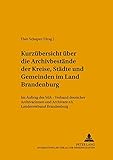 Kurzübersicht über die Archivbestände der Kreise, Städte und Gemeinden im Land Brandenburg: Im Auftrage des VdA – Verband deutscher Archivarinne By PDF